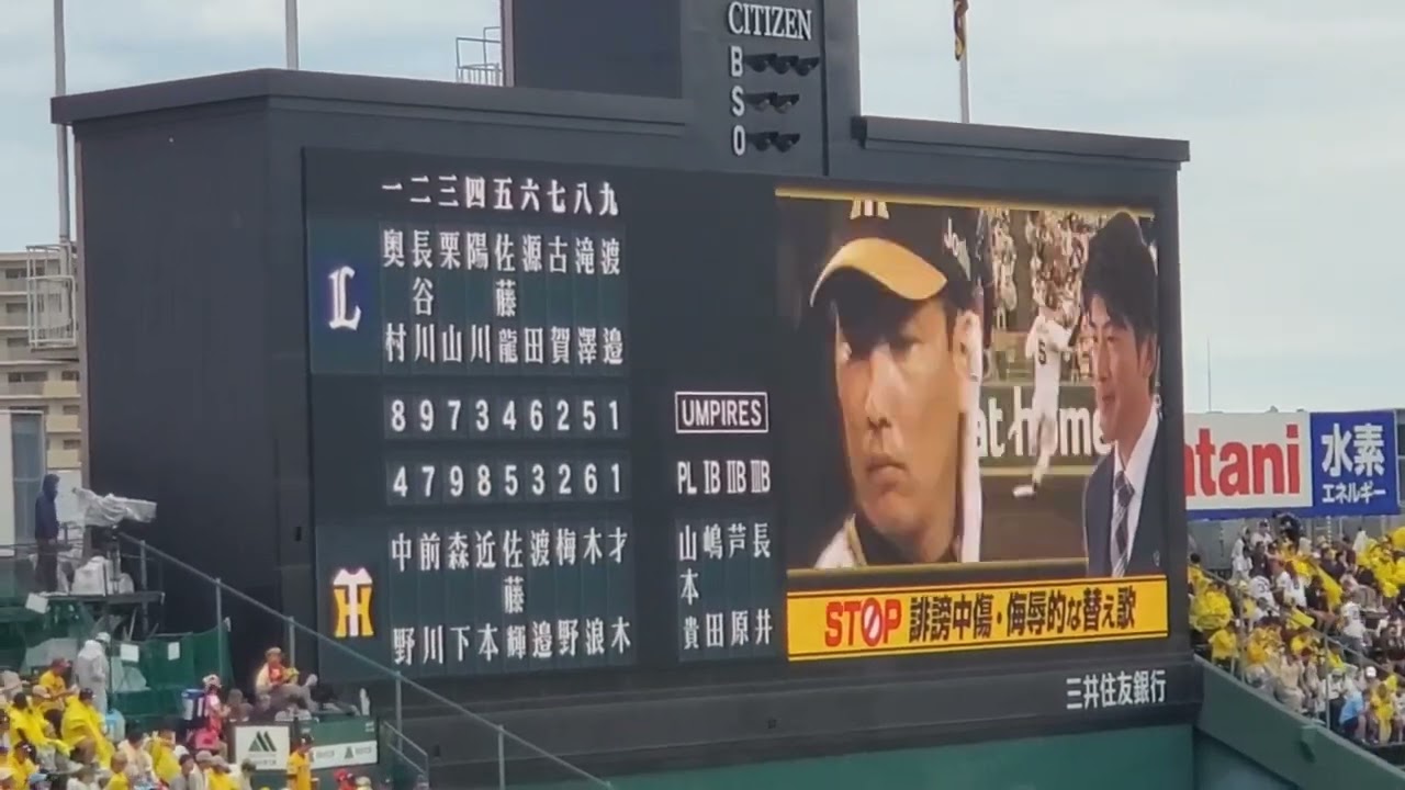 20240609【本日2回目】くたばれ禁止!阪神タイガースOB能見篤史さんが出演する誹謗中傷・侮辱的な替え歌禁止を呼び掛けるCM ノウミサン@阪神甲子園球場・レフト外野 日本生命セ・パ交流戦