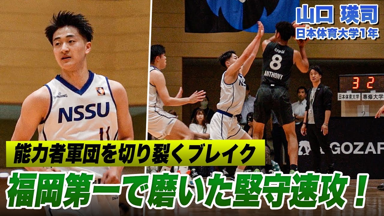 【バスケ】高校日本一のキャプテンがバチバチのDF&ブレイク連発!決勝進出に貢献した山口 瑛司(日本体育大学1年/PG/181cm/福岡第一高)|ルーキーズトーナメント2024
