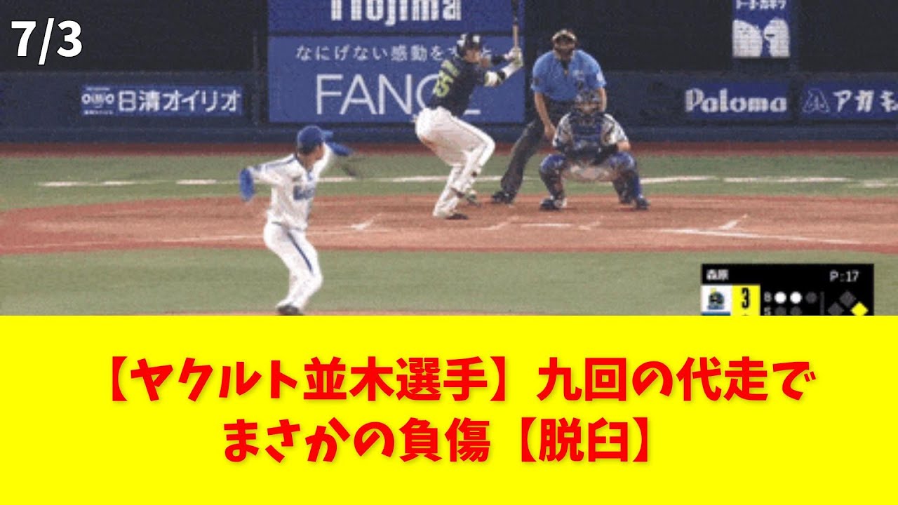 【ヤクルト並木選手】九回の代走でまさかの負傷【脱臼】 #ヤクルト #並木 #怪我 #脱臼 #代走