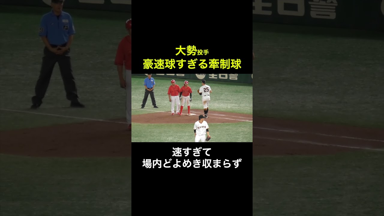 この牽制取れる⁉︎大勢投手の豪速球すぎる牽制球にビビる場内 #shorts #巨人 #大勢