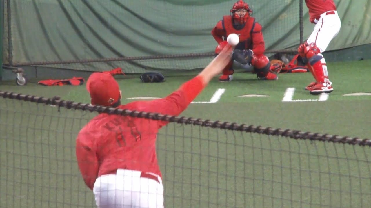 広島 九里亜蓮が試合前にブルペンで投球練習 2024年6月13日(木) ベルーナドーム