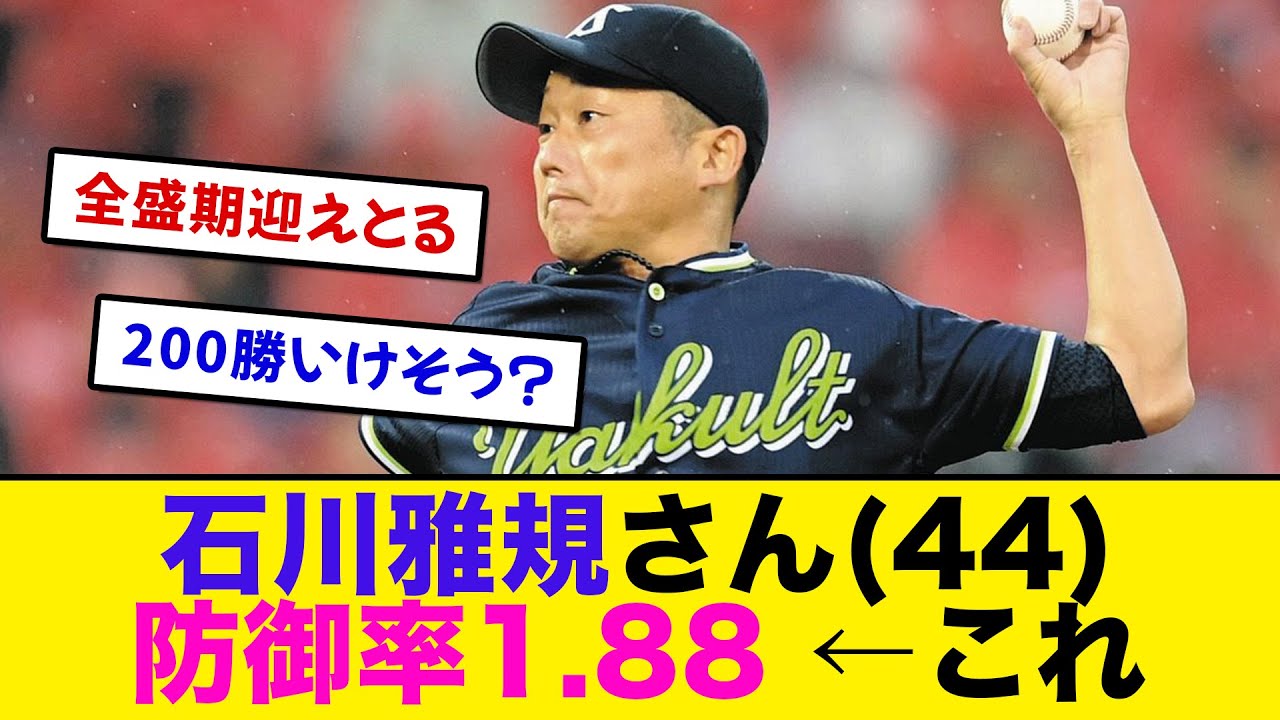 石川雅規さん(44)、 防御率1.88 ←これ【プロ野球反応集】【2chスレ 5chスレ なんJ】