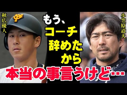 こんにちはいつもご視聴ありがとうござい ます本日も日本プロ野球会の最新情報をお 届けし ます旧会の名主と呼ばれる読売 ジャイアンツしかしそんな名門球団も2年 連続でBクラスに沈むなど近年は苦境に 立たされてい ます今シーズンは安倍新之介新監督の元で 再起を図るべく名門復活を目指しています しかし シーズン開幕から巨人は得点力不足に 悩まされていますあろうことか13試合 連続で3得点以下という球団ワースト記録 を作ってしまいまし た主人が奮闘しなんとかAクラスを維持し ているものの深刻な得点力不足は依然とし て解決の兆しを見せていませんこの とにかく打てない巨人打線の一員となって いるのが ブレークを果たし打線の中心メンバーとし て活躍した秋優の不審 です開幕からの不調がチーム全体の得点 力不足に拍車をかけています秋広選手は昨 シーズンには原監督の期待を一心に受け その期待に応える形で素晴らしい成績を 残しました特に夏場以降の打撃成績は目を 見張るものがありチームの得点源として 欠かせない存在でしたしかし安倍新監督の 元ではその勢いが影を潜めてしまったの ですそこで今回は2022年に巨人の2軍 打撃校地を務めた小笠原道博が語る秋広に ついての本音を交えながらなぜ彼が腹立つ のり全監督の元では活躍できたのに安倍 監督体制では苦しんでいるのかを掘り下げ ていきます 原全監督の期待を一心に背負っ て2020年のドラフト会議で巨人からご 意指名を受けて入団した 秋広入団当初から2mを超える身長は 大きな注目を集めまし た2021年のオフには背番号が松井秀樹 の55に変更され未来の大砲候補として 期待が寄せられていました そして3年目となる2023年秋広にとっ ての覚醒のシーズンが訪れまし た開幕こそ2軍スタートでしたが4月18 日に1軍へ 昇格22日のヤクルト戦ではプロ入り初の スタメン出場を果たし第1打席でプロ入初 安打と初打点を記録して注目を集めました 29日の広島線ではプロ初本を放ち完全に チャンスをつみましたスタメンで起用され 始めた秋は5月25日の横浜線で3番 ライトとして先発出場巨人の歴史において 松井秀樹以来となる二十歳以下での クリーンナップ出場を果たしまし たこうしてチームのクリーンナップとして 定着した秋は7月23日の時点で2桁本 ダーを放つなどその才能溢れる バッティングでファンを魅了しますそんな 秋広について原前監督はシーズン中に現役 時代に巨人で首相選手会長を歴任し活躍し た岡崎カとの対談で秋広のすさを語ってい ましたまず原条監督は彼の特徴なんですが 詰まってヒットが打てる詰まってもレフト 方向に飛ぶにばすごい打球が飛ぶ一発も 秘めていると 説明シを外されても外野の前に落すことが できるし真に当たれば長打を打つことも 可能であると秋のバッティングの特徴に ついて語りましたまた原前監督は技術面 だけでなく秋のメンタル面も評価してい ました脳天で身乱な性格も持っている したらどうだいて言いたくなるくらい独特 の秋広ワールドがあると述べスポーツ選手 にとって重要なメンタル面についても高く 評価していたのですさらに原前監督は技術 も我々には計り知れないものを持っている 高橋義信安倍慎之助松井秀樹という 素晴らしい左バッターたちにもない秋の 強みがあると語り巨人のレジェンドOBた の名前を並べた上でいかに秋広の ポテンシャルが高いかを絶賛しました実は 2023年の春季キャンプの段階で原監督 は秋広を特に目を引く若手として秋広が すごいよもしかしたらブレークするかもと すでに名前をあげていましたスイング スピードが早くなった秋は之がよく見てい ます左バッターだから特にをって教え られるのでしょう長打力はすでに ジャイアンツで1番だと思います高校卒業 して大学に行っていれば3年生になろうか というところですからまだ焦る必要はあり ませんがでも面白いねと熱く語っていたの ですこうして原前監督から絶賛された秋広 はシーズン終盤には初めて1軍で過ごす シーズンということもあり調子を落とし ましたが21試合に出場して打率2割7部 林本ルダー41打点の成績を残しました これは高速3年目の野としては十分すぎる 数字 ですさらにオフには若手中心のサムイ ジャパンにも選出され契約公開では前年 より 2620アップとなる 350万円を勝ち取りまし たこ率は 46%で球団歴代4位の上昇率を記録して い ますOBの 見解このようにして3年目でついに覚醒を 果たした秋広ですがシーズン終了後には 巨人で1時代を築いた2人の打者が秋広の バッティングと今後2年連続で活躍する ために必要なことを明かしていますその 打者とは巨人の し活躍したアレックスラミレスと同時期に 3番を打ちおがみコンビとして知られた 小笠原道です小笠原は2022年に巨人の 2軍打撃コチを務めており秋はまさに語と 言える存在そのため彼らの間には朝からぬ 縁があり ますまず最初にラミレスはについて レギュラー1年目としてはまずまずの結果 を出したが経験を積めば
