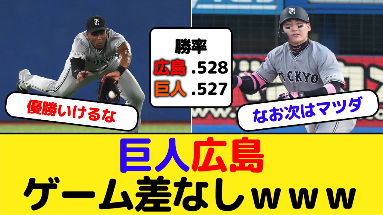【朗報】巨人快勝で広島とゲーム差なしwww