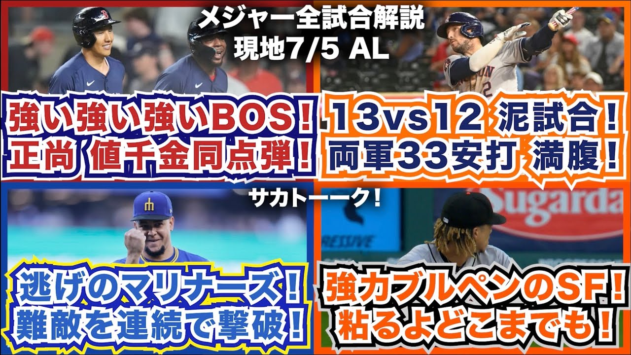 【AL7/5】強い強い強いレッドソックス!吉田正尚9回値千金同点弾!13vs12の泥試合!両軍合計33安打で満腹です!逃げのマリナーズ!難敵を連続で撃破!強力ブルペンジャイアンツ!粘るよどこまでも!