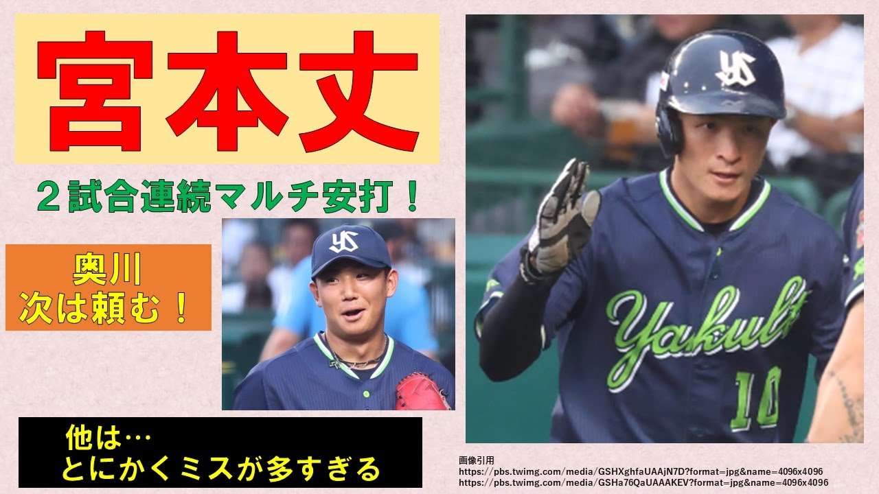 【ミスが多すぎる】宮本2試合連続マルチ安打と金久保の好投が数少ない光【奥川次は頼む!】2024-GAME80