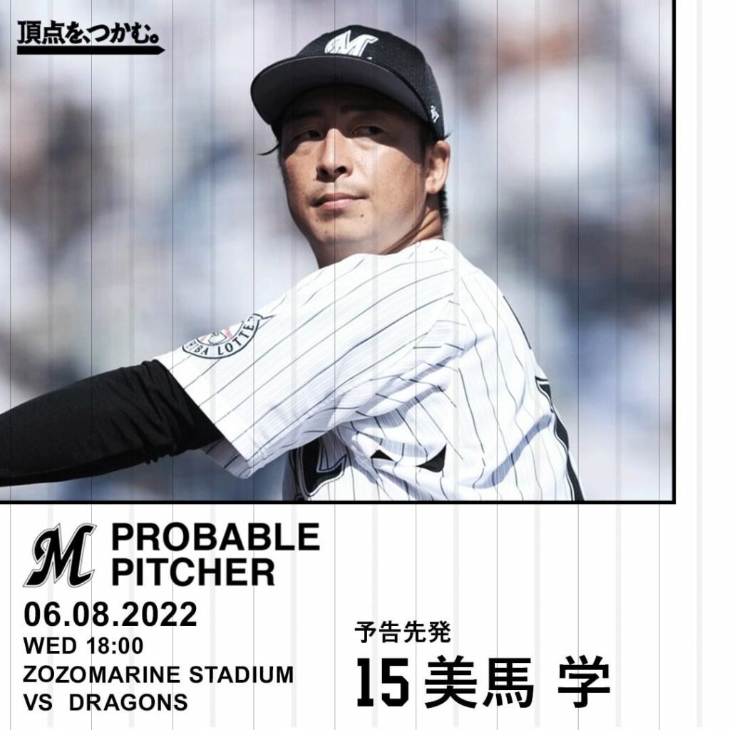 06.08.2022 予告先発:#美馬学 投手 #chibalotte #2022セパ交流戦 2022セパ交流戦Chiba Lotte MarinesChiba Lotte Marines Official MediachibalotteNPB Pacific LeagueOfficial Media千葉ロッテマリーンズ美馬学 NPBHUB.COM | The Fanbase of Nippon Baseball & Nippon Professional Baseball