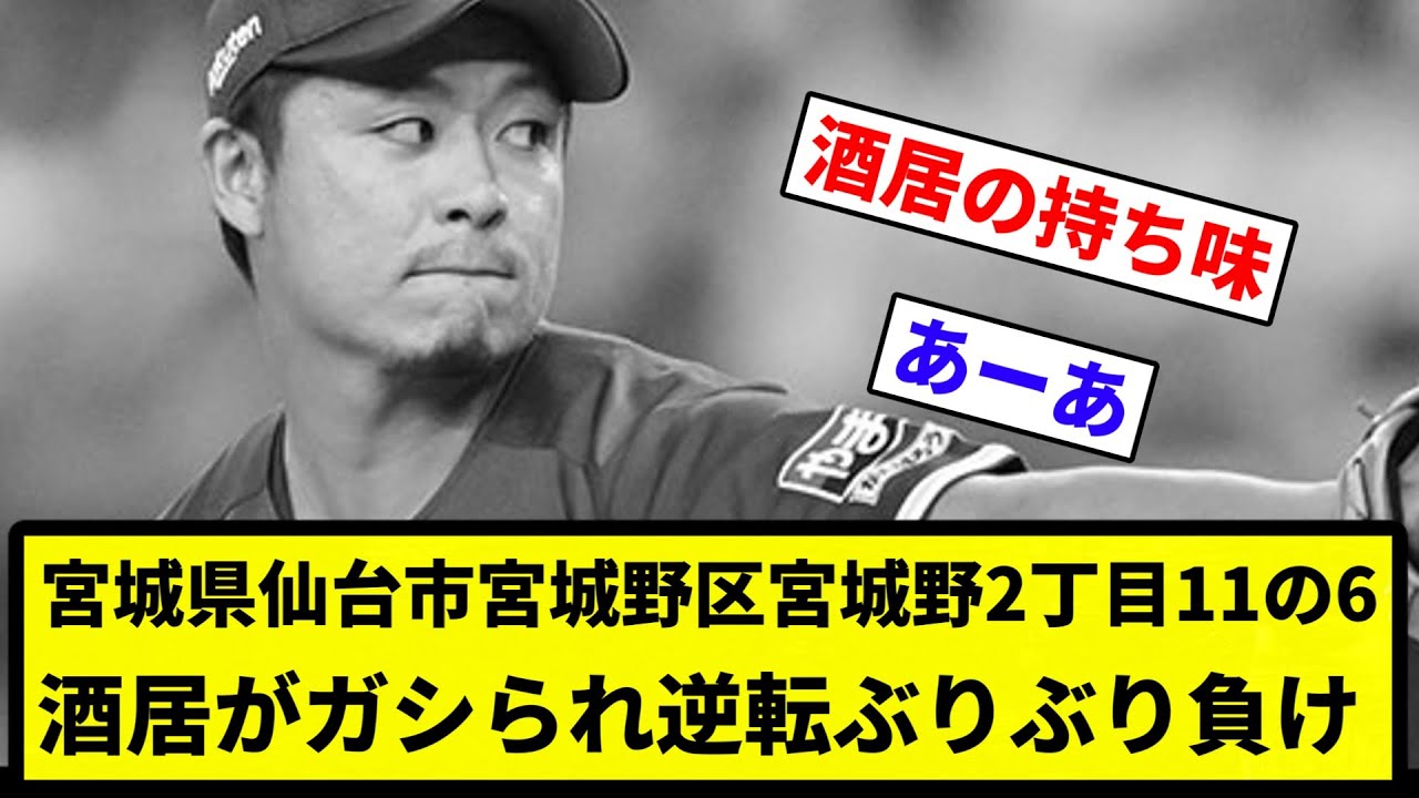 【議論】宮城県仙台市宮城野区宮城野2丁目11の6 酒居がガシられ逆転ぶりぶり負け【プロ野球反応集】【1分動画】