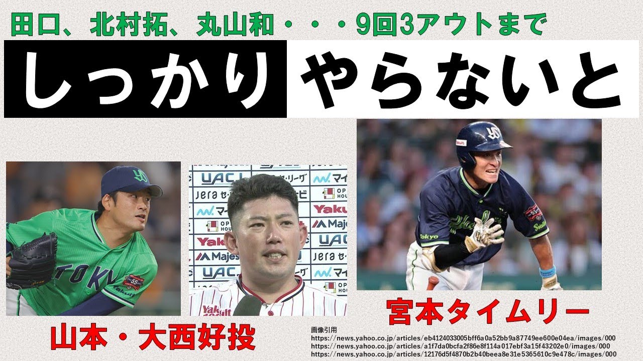 [音楽] いやあちょっと待ってよというかですねま おそらく私だけじゃないでしょうありえ ねえわあ心の声が出てしまった方 いらっしゃるんじゃないでしょうか皆さん いつもありがとうございます好きなすみを 好きなだけチャンネルでござい ます7月の9日え今日からまた新たな 気持ちでというところ球場阪神戦だたん ですがいやあ1対0逃げきれないもんです かえ最終スコア2対1逆転でですね さよならという風な決着になりまし た うーん連敗を止めるという意味でもそして オールタで残り10試合カウントダウンの 中のその大事な1戦目という意味でも そしてそのスワローズのね今年のこれから の戦い方をう上でも非常に重要な一戦だっ たじゃないかなというところうーんこの 試合はこういう結果になってしまうとはと いう感じですよ ねまよく優勝するチームはですねあこの 試合がその優勝のところに向けての ターニングポイントだったよねみたいな話 あるじゃないですか今日のスワローズの 試合はあんまり言いたくないけども ちょっと逆の意味で今年のスワローズの ターニングポイントになってしまいかね ないまそんな試合だったのような気がし ます まあこの状況打破するには明日の予告先発 奥が投手え故障明けのピッチャーにここの 重石を託すのは忍びないけれどもこの流れ を変えてくれるのはあなたのようなスター ですよという思いをも込めるしかなさそう なそんな気がしてますはいえ悔しい気持ち とちょっとね心穏やかじゃない状況があり ますけれどもえ試合の振り返り画という形 でですね最後までお付き合いくださる方 よろしくお願いいたし ますはいえ最初にでは工事とスタメンで ございます事ご覧の通りえ登録は金久保 投手でございましたねえ1試合だけ1軍で 投げて抹消されちゃってええなんでなんて いう風に思ってましたけどもま2軍でも しっかりね結果を残してまた戻ってきて くれました是非首脳人の皆さんもですね この金久保投手をしっかりと起用してあげ てほしいそして金久保投手もしっかりね1 軍での自分の地位を作るようなそういう ピッチングをねお願いしたいですねで スタメンご覧の通りですねえ左バッター4 人が1番から4番に並ぶ並びえ丸山選手が 1番ですねえ過去この西川選手との並びで 西川選手が1番のことが多かったんです けれどもえ最投手との過去の今シーズンの 対戦戦績4打数4案だというですね丸山和 選手この相性がえこの並びにだったのかな ともうちょっと思ってりましたそれから6 番に宮本選手清ですねえサンタ選手今日は には入りましたが果たしてというでござい ます ねはいという中でえ経過 ですはいえまずは初回ですね今日はえっと 阪神の先発佐伯投手ですね立ち上がりは そこまで良くなかったと私は思ったんです がいかがだったでしょうかええ1回表は 先頭バッターその相性がいいという丸選手 がセターヒットそして盗塁を決めて西川 選手の小頭これはちょっとかなり暴走気味 でしたけれどもえ3塁に進むことが成功 ワンナウトな3塁でマリアム選手にもそう でした西川選手もそうでしたであとは長岡 選手もねえ結果的にはファースト頃でした けどもそれぞれですね結構球数投げさせて たんですねでファールでねえ粘ることも できていたっていうところはあったので なんとか初回先制点を上げたかったんです がその3人のバッターが結構粘れてた ところに対しでそして空振りをせずにです ねえーいろんな決着をつつけることができ ていた中村上選手は2つの空振り三振と いうことでですねまこの初回の攻撃だけで もですねやっぱり村上選手の状態の悪さと いうことはですねえ改めてちょっと感じて しまうそんなシーンでございましたえ スローズ先発吉村投手ですねまランナーを 出しながらもうま無視点で抑えていくと いう感じでえ3回の裏はえ8番小田選手 そしてバンドが失敗もあったりはしたん ですけども2アトから中野選手のヒットと かで2アトな1塁2塁ピンチは作ります けどもここは前川選手ライトフライで無視 てというですね序盤3回は両チ無得点で4 回の表スボ先制しますえこの回戦と長岡 選手がセンターへのヒットえ村上選手です ねえっとセカンドゴロは結果的に新塁だオ 選手もセカンドゴロえ2つの新塁だりツ アウトな3塁となって宮本選手セカンド 方面でしたけども宮本選手の打球は12塁 を抜ける当たりえまあの列だとかね強烈な 当たりではありませんでしたけどもしぶく 持っていった宮本選手の粘りのある バッティングま若干フォークが落ちきら なかったっていうところもあったのかも しれませんけどもねえヒットにし宮本選手 ナイスということでタイム先生でござい ますさあ援護もらった吉村投手まあ今日 このね4回と6回のフォアボールですよね まここがねちゃんと行けてたらもう ちょっと長いイニング投げれたんじゃない のかなっていうのがあってま吉村投手これ はちょっと次への課題にして欲しいかも しれませんとはいえ4回裏