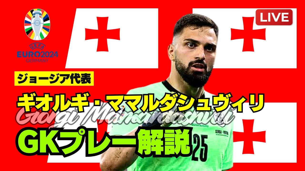 [音楽] はい え始まったかないけるかなはいあまぜさん 待機しますありがとうございますえ コメントをいいてましたよね前回ねはい ありがとうござい ますよいしょちょっと待ってくださいね今 マイクのアームをちょっと調整します え何これめっちゃ硬いよいしょあまいい や はいちょっとね あの今あの配信始まる10分前から慌てて 晩飯のカレーをかっこんでちょなんか喉の 調子あんま良くないんですけどはいやって いきたいと思います はい よいしょというわけでねさんいかがお 過ごしでございましょうかはいズムで ございますはいというわけで毎1週恒例の やってまりましたこのね配信のお時間で ございますけれどもはい今日はねあの ニッチもニッチだよねニッチなのかよく わかんないけどあのギオルギままダシュ ビリ選手編 です誰誰って いう誰っていうねはい感じなんですけれど も はいおでんチリこんばんは二十歳になった のでお酒を飲みながら見てますよお めでとうござい ますハッピーバースデーいや素晴らしいね 二十歳のねちゃんと偉いねこの二十歳に なってからお酒飲むっていうね偉いねいや ま普通のことなのかもしんないですけど はいいいですねはいあの楽しんでください 何飲んでたかはいあのちなみに僕はねお酒 飲めないんであれなんですけどねはいいい と思いますいいですねなんか幸せななんか 分かってる楽しみ方してん な酒飲みながら晩酌がてらこのチャンネル の実況ねこう実況というかねその解説見 ながらこうねああでもないこうでもないっ てチャットするいいですねいい楽しみ方だ おゆたゆさんありがとうございますね相 変わらずのこのね選手の情報分かりやすく 端的にまとめて出してくれるっていうはい 皆さんね疑問に思ったことでしょうこのギ まるダシュ何者なんだとね私もよく分かっ ておりませんはいとりあえずあのねユロで あのめちゃくちゃ活躍したからちょっと あのやってみようっていうことでねあの 映像もちょっと見たんですけどま確かにね すごいいい選手だなと思ったんですけど 完全プロフィールの方がよく分かってない のでちょっと見ていきたいと思うんです がえギオルギママダシュビリジョージア 代表ゴールキーパー1999cm え93kg23歳利き足左2021年9月 8日対ブルガリア代表戦で代表デビュー古 出場するも1対4で敗戦未来ミラン バイエルニューカスルリバプールラが獲得 に関心おなるほど結構やっぱり有望ま サイズもあるし若いしねうん結構有望株と してね今バレンシアかどっかですよね確か はいね素晴らしいあのゴールキーパーなん だろうなっていうのは感じさせる選手なん ですけれどもはいまぜさんユロ見てるから すごいいいき派なのが分かるねあのチェコ 戦だったっけあの1試合11セーブって いう化け物じめてるスタッツですけどてか どんだけシュート打たれてんだよっていう ね少なくとも枠内シュート11本打たれて るってことです からまとんでもないですよね本当にねあの 90分あたりのセブが確か1位なんだよね この選手であのえっとゴール期待値から 実際の失点数を引いたなんかゴール防御数 っていうスタッツがあるんですけどまあの 実際予想されてる得点数からどれだけの ゴールを防いだかっていうまスツですね どれだけのゴールを防いだかうんっていう ので確か1位なんだよねこの選手 ゆさん先週はライブで見れなかったので 情報提供できませんでしたすみませんいや 謝ることじゃないのよ別 に全然あの謝ることじゃないからね全然 全然大丈夫ですよありがとうございます むしろ毎回ねこんな感じで情報提供して くださって本当にありがたい限りですけど 現在バレンシア所属あやっぱりそうですね ジ勝国の最強キーパーねジョージアなんて あれですからね本当にユロ初出場ですよね ね確かそれでベスト16行ってね1時は スペイン代表にリードするっていうね 素晴らしいあの活躍をであの試合もね ちらっとだけ見たんですけどあのなんか 面白いですよねそのいわゆるジャキ者の サッカーではあるんだけどなんかこう結構 洗練されてるというかなんか洗練されて るってかんだろうねなんかみんな頑張る感 がすごい交換持てていいよねスペイン戦の 時もやっぱあの ね1点目決めたのもカウンターでね綺麗に 決めてなんかすごいみんな頑張って走る チームだなっていうのは あの短いあの時間しか見てないですけど すごい感じましたねはいというわけでえ あの今日ですねえっとこれあの映像をね こう編集してもらってるんですけどあの4 試合えっとジジやってま試合やって グループリーグ3試合とあと決勝 トーナメント1試合っていう感じでやっ てるんですけどあのプレー集が多すぎて プレー集だけでなんか20分以上あるん ですよなんでもう見ていきたいと思います はいあのおしりしながらねこうああでも ないこうでもないって言いながらえまず 全体のえっとまプレイを見ていってでそこ からえっとま気になるプレイをちょっと 買いつまんで