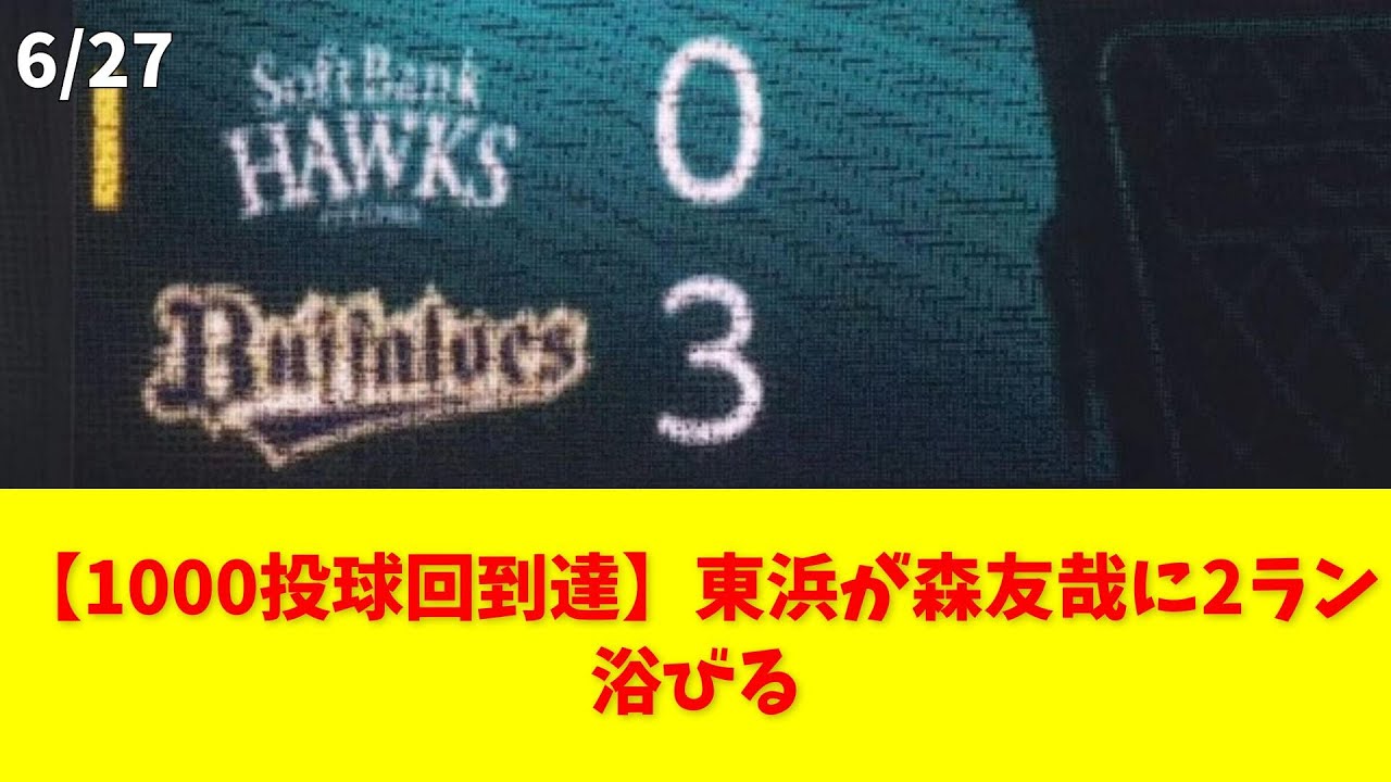 【1000投球回到達】東浜が森友哉に2ラン浴びる #ソフトバンク #東浜 #1000投球回 #ほろ苦い #2ラン