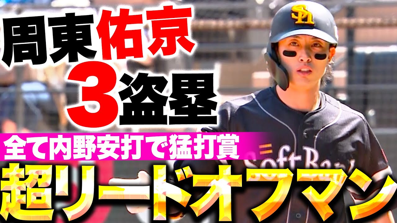 【超リードオフマン】周東佑京『縦横無尽…全て内野安打の3安打猛打賞+3盗塁の活躍!』