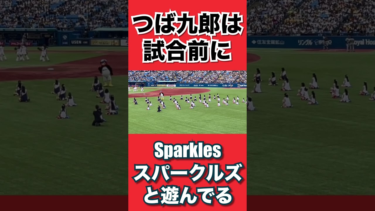 つば九郎総裁は試合前にsparkles(スパークルズ)と遊ばれているそうです。付き合ってくれてありがとうね😊 #swallows #ヤクルト #スワローズ #ヤり返せ #sparkles #神宮球場