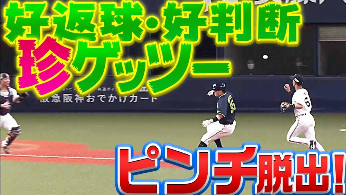 オリックスが好連係でピンチをしのいだ場面。走者を3塁に置き、レフトへ打球が上がる。これを中川圭太が捕球し、素早く正確に中継の宗佑磨へ。送球を受けた宗佑磨がうまく走者を挟み、アウトに仕留めた!!