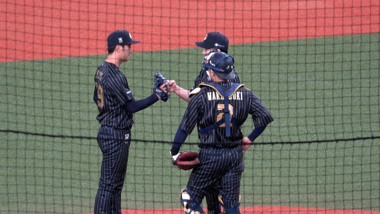 マウンドでピッチング練習した直後に投手交代を告げられるも、7回無失点の結果に晴々とした表情をみせる田嶋大樹