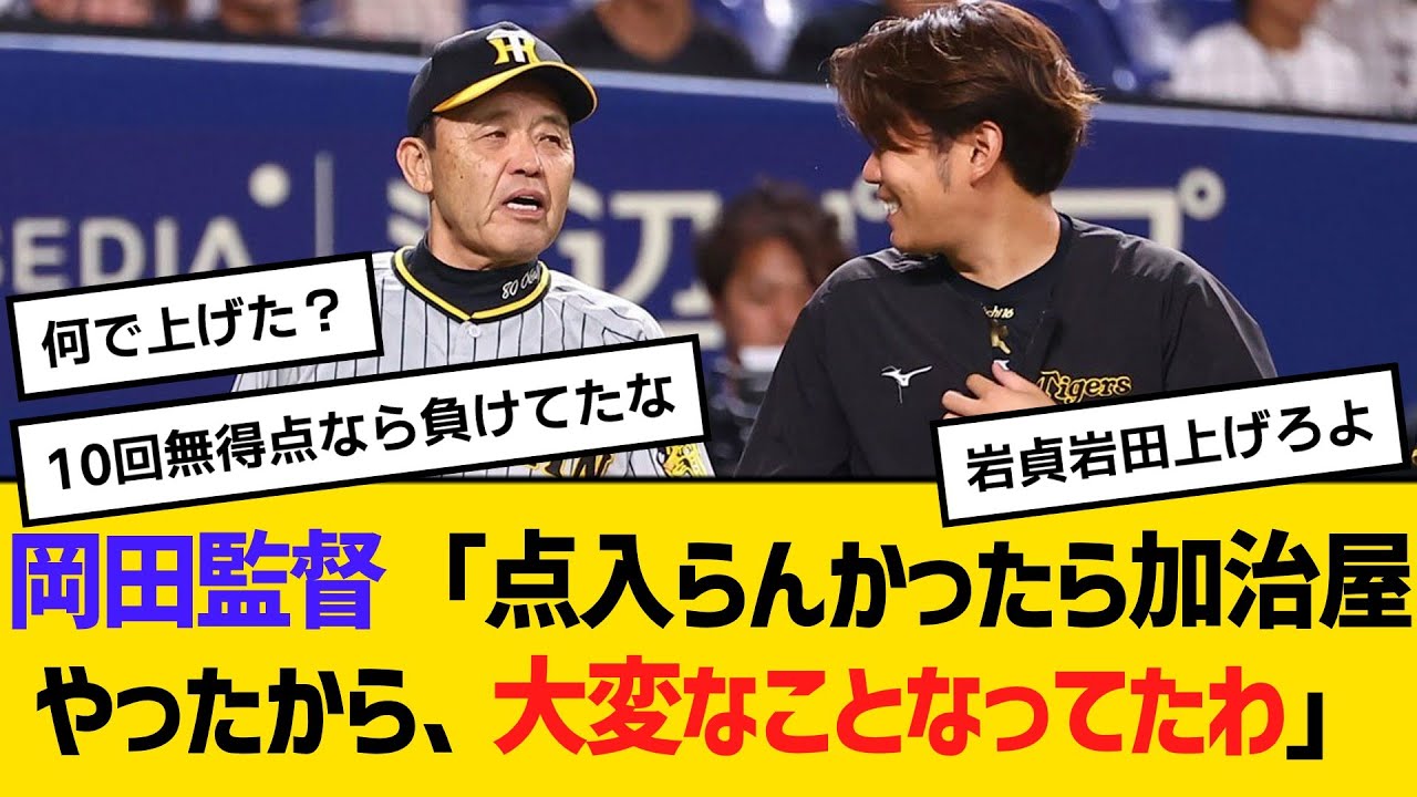 阪神・岡田監督「(10回表)点入らんかったら加治屋やったから、大変なことなってたわ」 【ネットの反応】【反応集】
