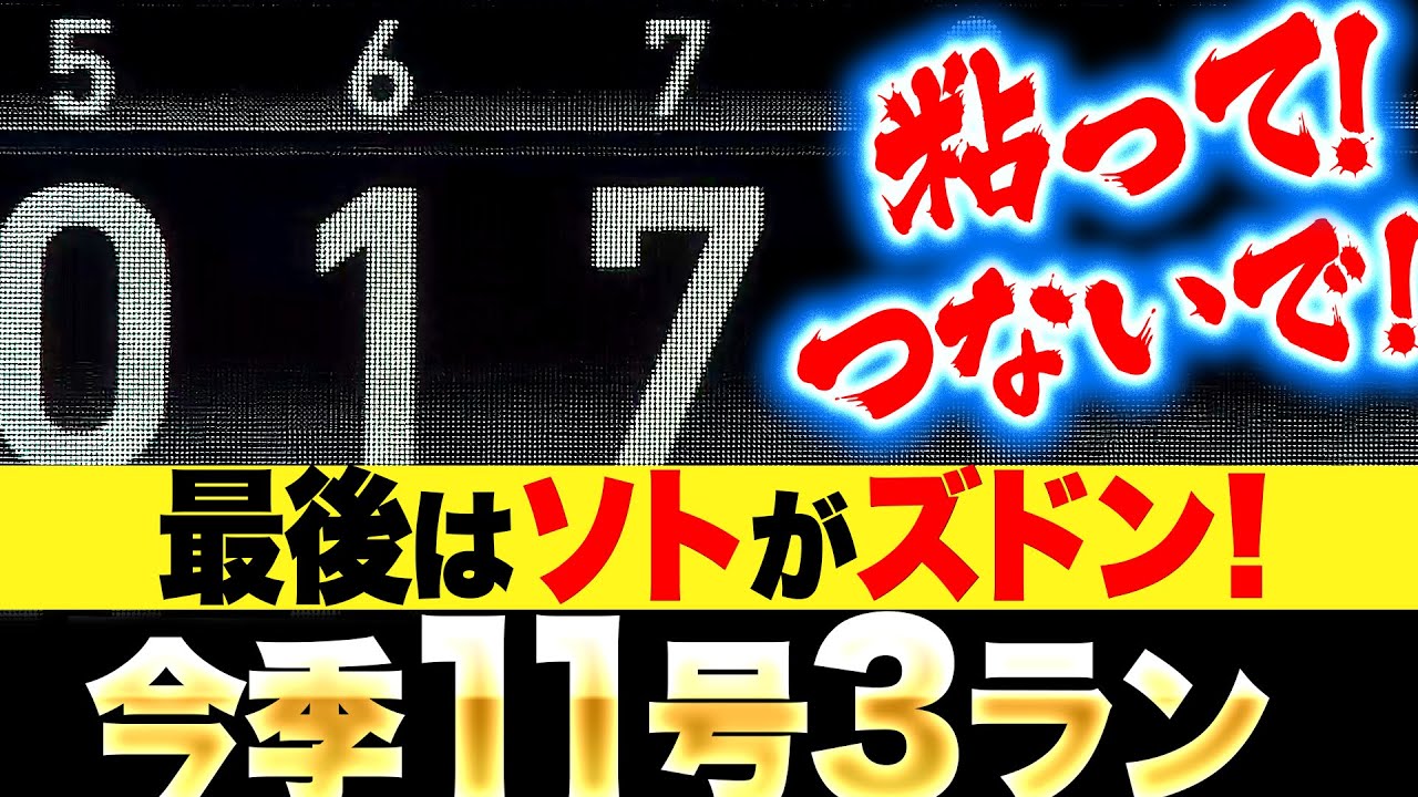 7回表、マリーンズ打線が爆発。四球や安打などでつないで大きなチャンスを作り、藤原恭大の犠飛などで得点。最後にはソトがズドンと11号3ランを放って計7得点。マリーンズ打線の逆襲でホークスを退けた。