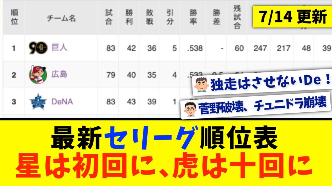 【7月14日】最新セリーグ順位表 〜星は初回に、虎は十回に〜