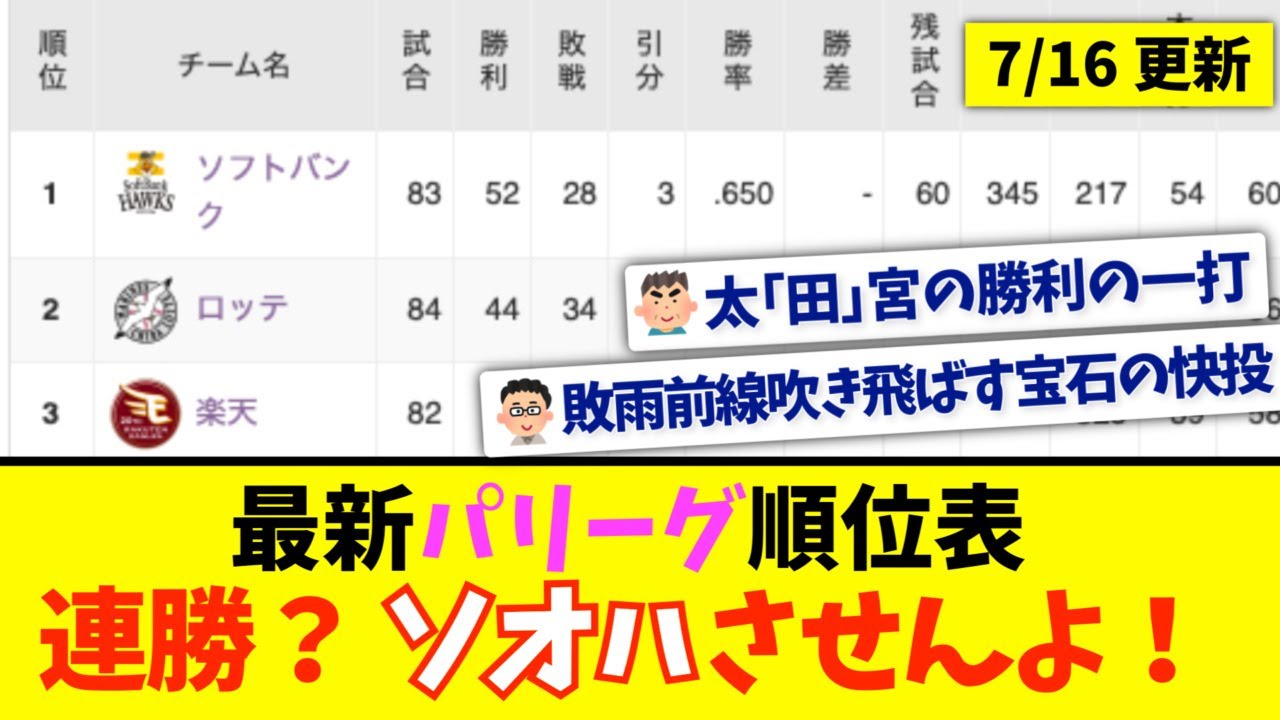【7月16日】最新パリーグ順位表 〜連勝? ソオハさせんよ!〜
