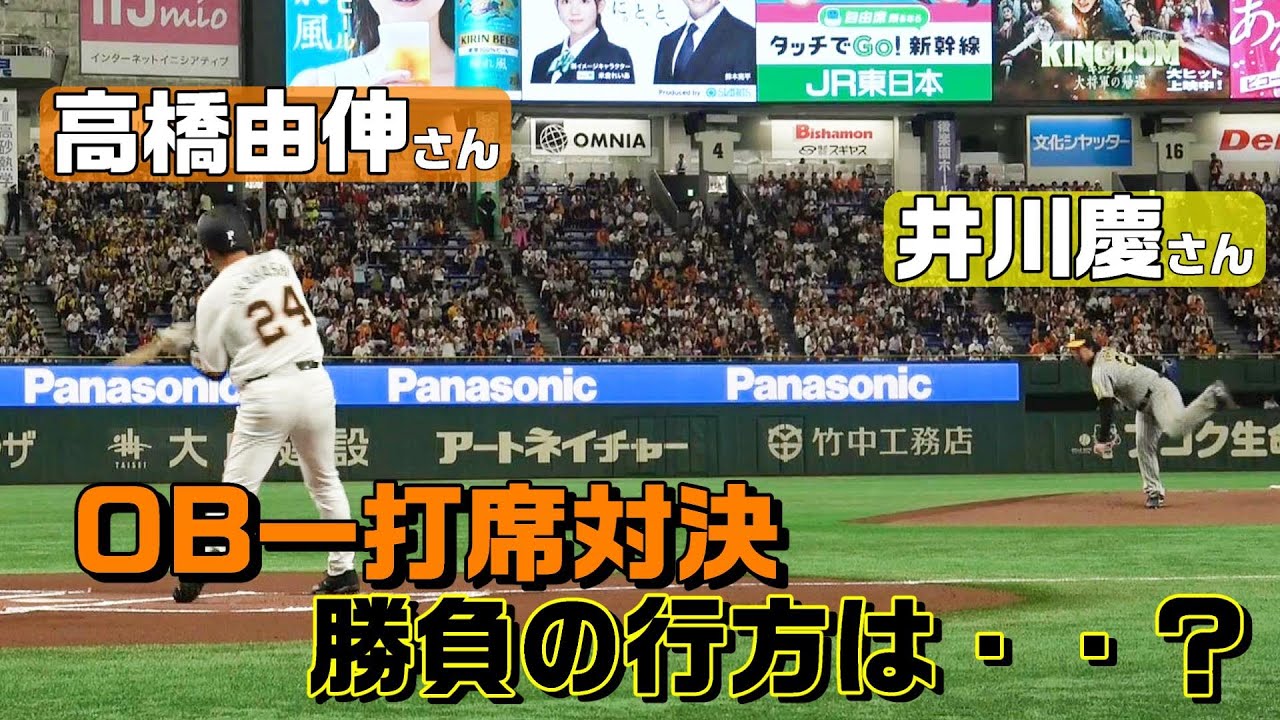 読売ジャイアンツと阪神タイガースによる共同プロジェクト「伝統の一戦 ~ THE CLASSIC SERIES ~」の関連企画として、7月16日の巨人-阪神戦の試合前に巨人OBの高橋由伸さんと阪神OBの井川慶さんによる「OB一打席対決」を実施しました。
