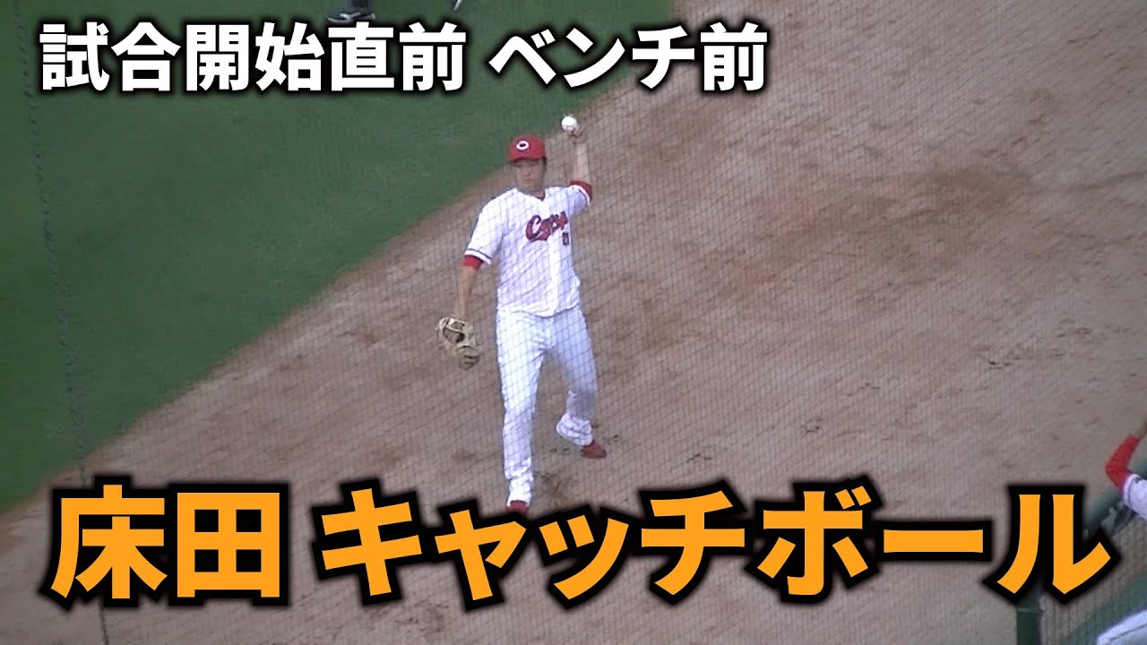 【現地撮影映像】試合開始直前。床田寛樹、8勝目を目指してベンチ前でキャッチボールでウォーミングアップ。 2024年7月12日 vs ヤクルト