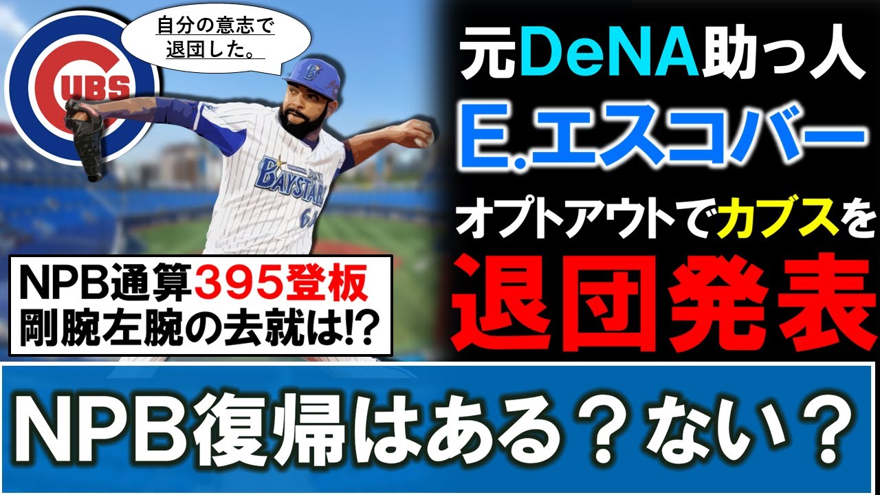 【補強期限は迫っているが…!?】元横浜DeNA『エドウィン・エスコバー』がオプトアウト行使でカブスから退団発表!NPB通算395登板を誇る剛腕左腕のNPB復帰はある?ない?