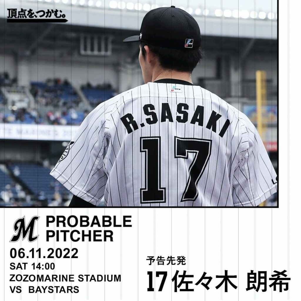 Chiba-Lotte-Marines: 06.11.2022 予告先発:#佐々木朗希 投手 #chibalotte #2022セパ交流戦…