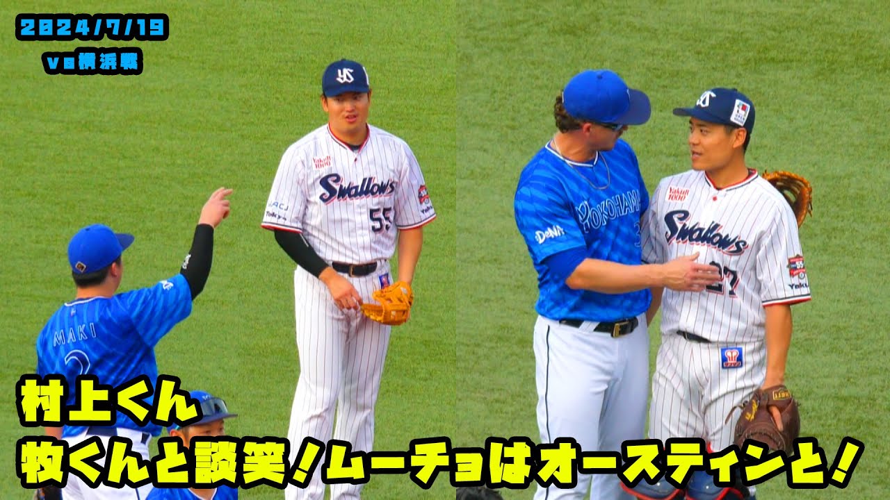 村上くん 試合前に横浜・牧くんと談笑する!ムーチョはオースティンと! 2024/7/19 vs横浜