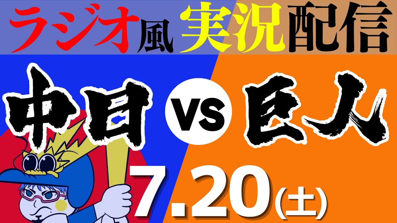 【ドラゴンズ応援実況】7/20(土) 読売ジャイアンツVS中日ドラゴンズ【プロ野球ライブ ラジオ風実況】