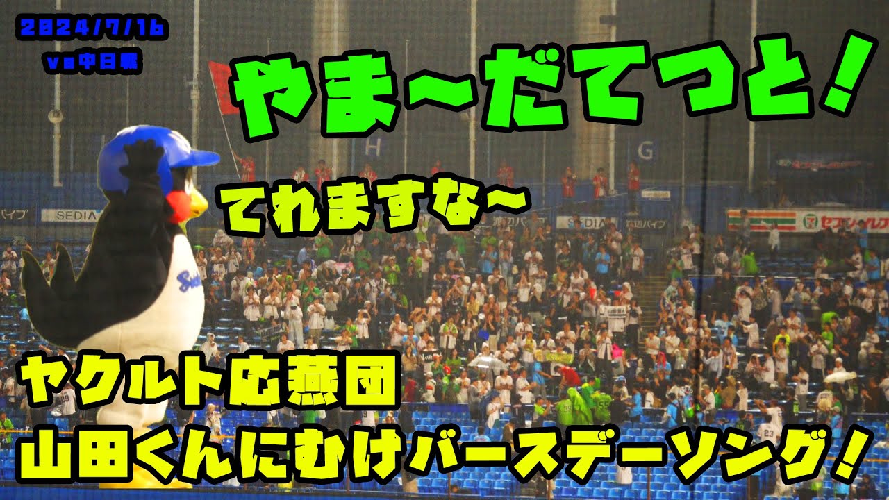 ヤクルト応燕団 山田くんにむけバースデーソング!つば九郎がなぜか照れる! 2024/7/16 vs中日
