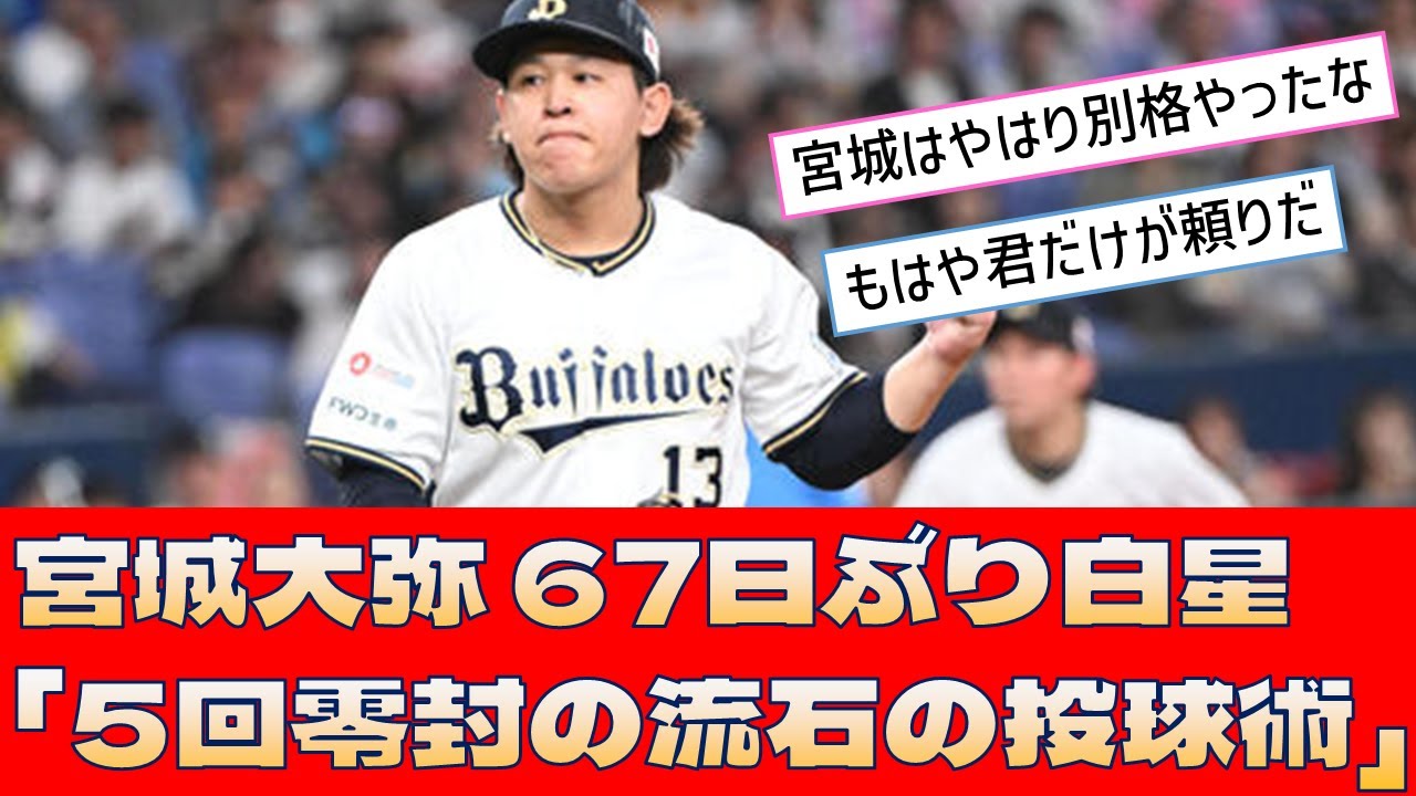 【オリックス 宮城大弥】67日ぶり白星「5回零封の流石の投球術」【プロ野球 2ch 5ch なんJ】