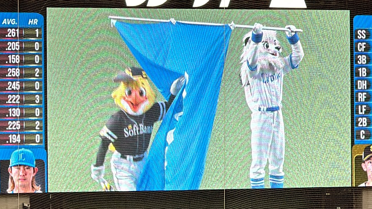 ベルーナドームに出張してきたハリーホークをやんわり邪魔するレオと軽くいなすハリーホーク ハニーズも来てますよ【西武vsソフトバンク】2024/7/20