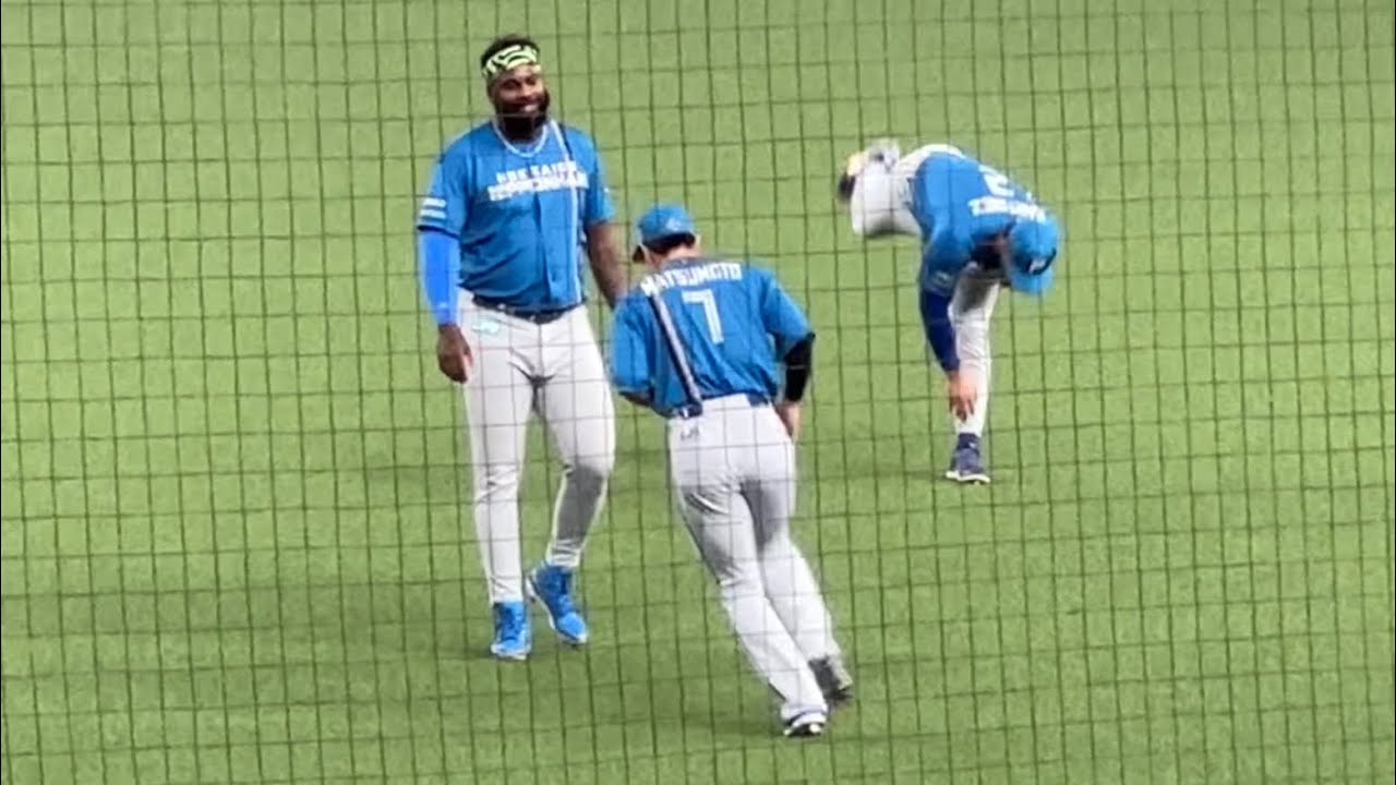 【今日のスタメンは説明欄に】自分の応援歌をバックに楽しそうな試合前のレイエスと松本剛(とマルティネス) 【西武vs 日本ハム】2024/7/10
