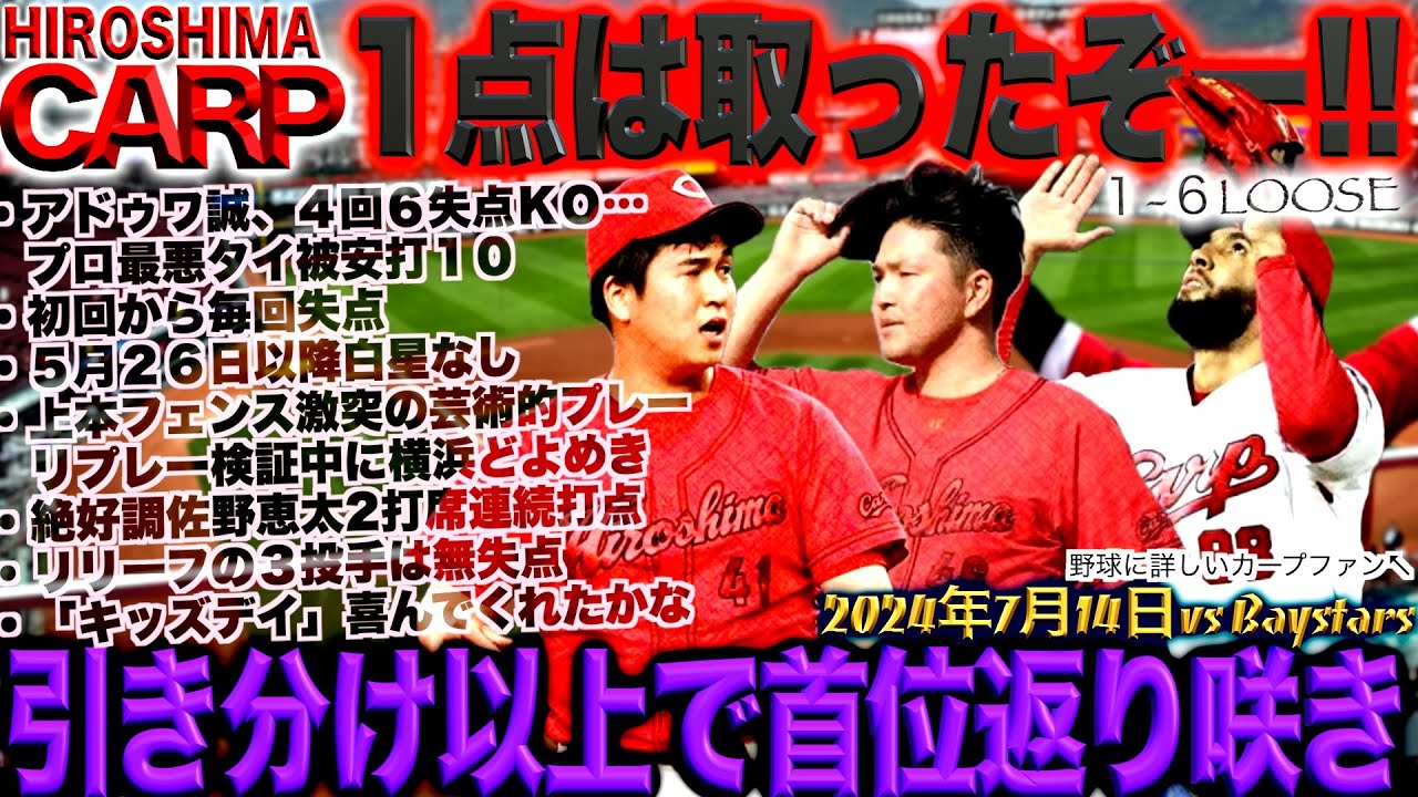 セ界圧縮!【広島カープ】なんかもうこの負け方に慣れました。無抵抗だなぁ(2024/07/15)