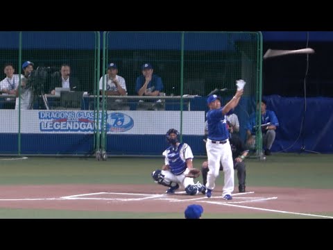 中村紀洋 ドラゴンズのOB戦で美しいバット投げを見せる!!(2024/7/25)