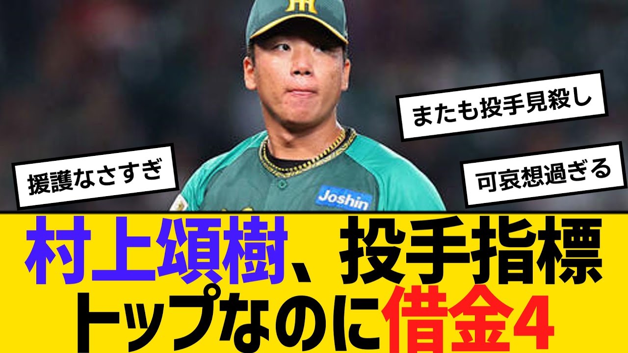 阪神・村上頌樹、投手指標トップなのに借金4 【ネットの反応】【反応集】