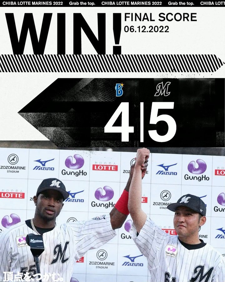 #MarinesWIN投打が噛み合い、交流戦最終戦を勝利で飾る!#マーティン 選手は先制弾を放ち、#荻野貴司 選手は2本のタイムリー含む2試合連続猛打賞の活躍!#佐藤奨真 投手は6回4安打7奪三振2失点の好投でプロ初勝利を挙げました!#chibalotte #2022セパ交流戦 2022セパ交流戦Chiba Lotte MarinesChiba Lotte Marines Official MediachibalotteMarinesWINNPB Pacific LeagueOfficial Mediaマーティン佐藤奨真千葉ロッテマリーンズ荻野貴司 NPBHUB.COM | The Fanbase of Nippon Baseball & Nippon Professional Baseball