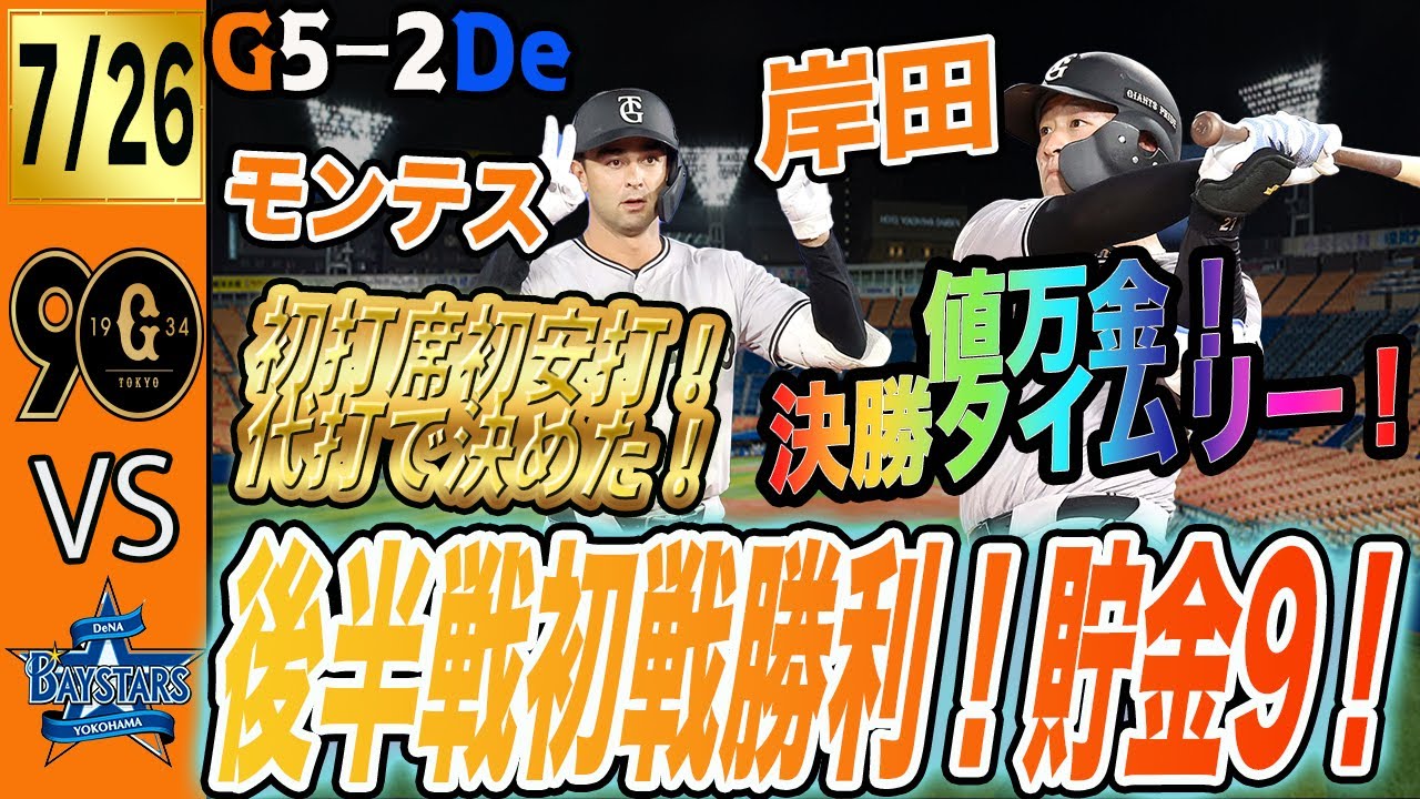 強いぞ巨人!7人の投手が強力DeNA打線を2失点に抑え岸田の決勝打で勝利!モンテスにも初打席初ヒット! 読売ジャイアンツ