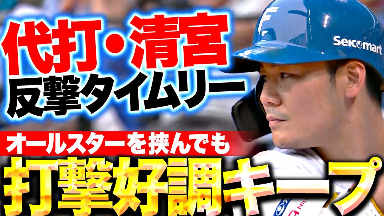 怒涛の代打攻勢が流れを変えた。7回裏、2死から田宮裕涼、上川畑大悟、清宮幸太郎と3連続で代打を送る。すると、清宮幸太郎がここまで好投を続けていた埼玉西武・武内夏暉からセンターへのタイムリーを放ち1点を返す!! オールスターを挟んでも好調をキープする一打を放ち、見事期待に応えた!!