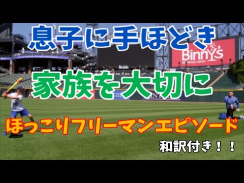 息子さんに愛情たっぷりの野球指導をするフリーマン♡