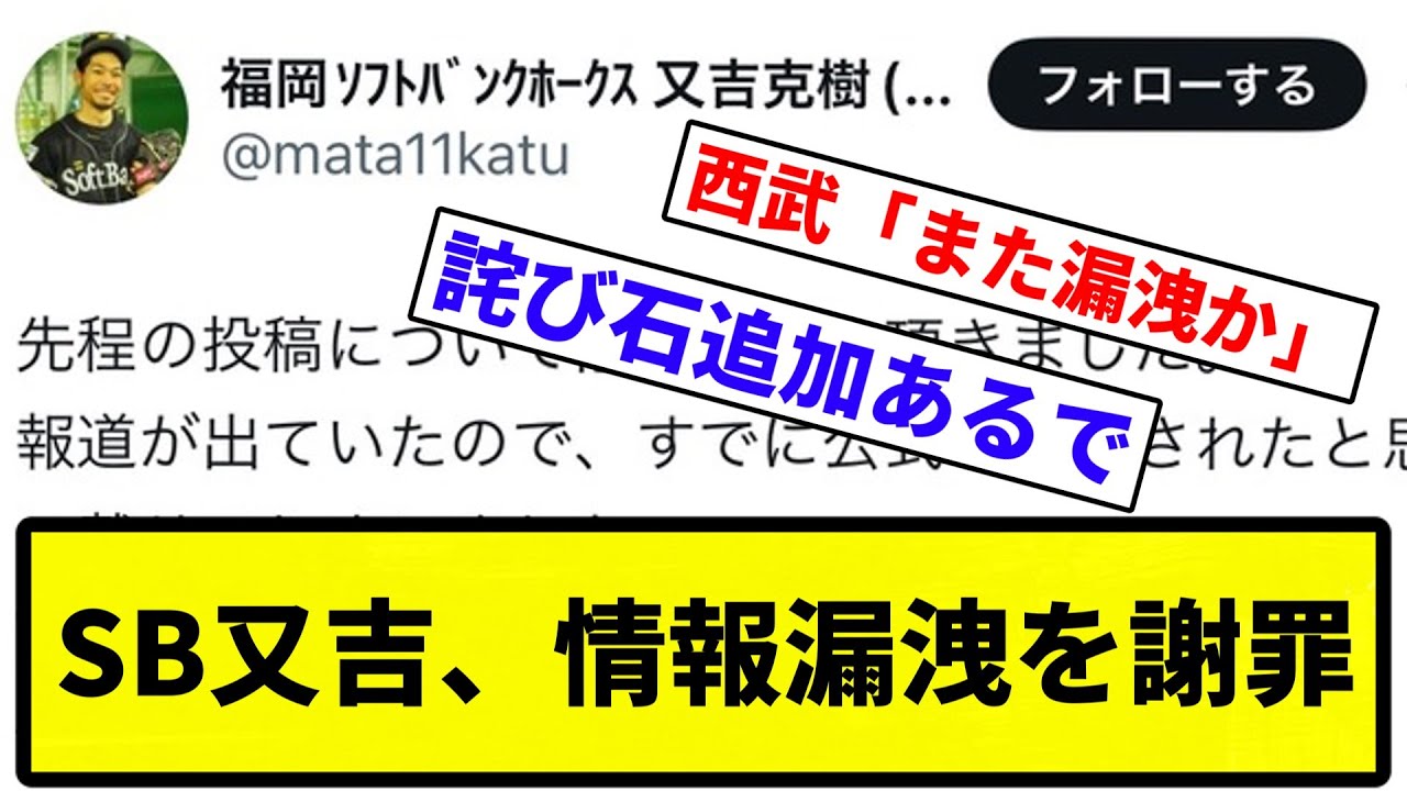 【また戒めトレードか?】SB又吉、情報漏洩を謝罪【プロ野球反応集】【1分動画】