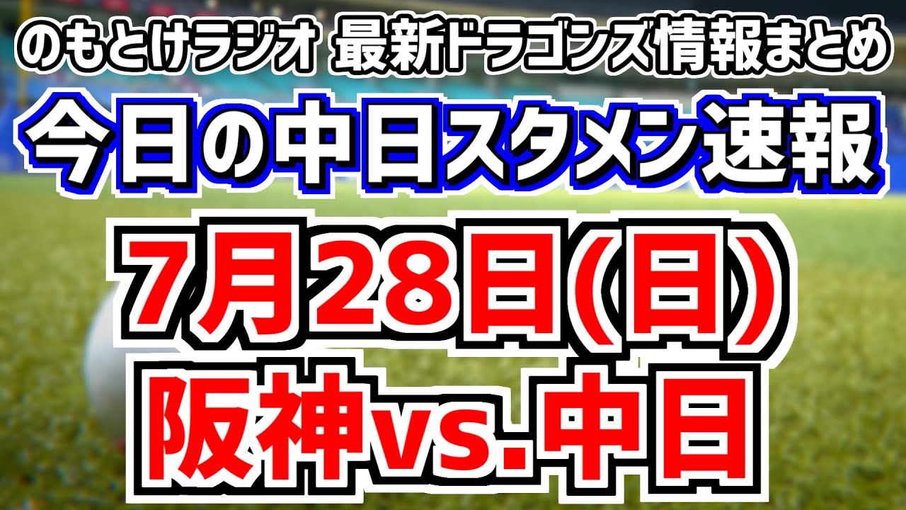 大幅スタメン変更の驚いた反応放送 7月28日(日) 今日の中日ドラゴンズスタメン速報/試合直前雑談 阪神vs.中日 のもとけラジオ番外編 2軍オリックス戦 柳裕也らについて話も