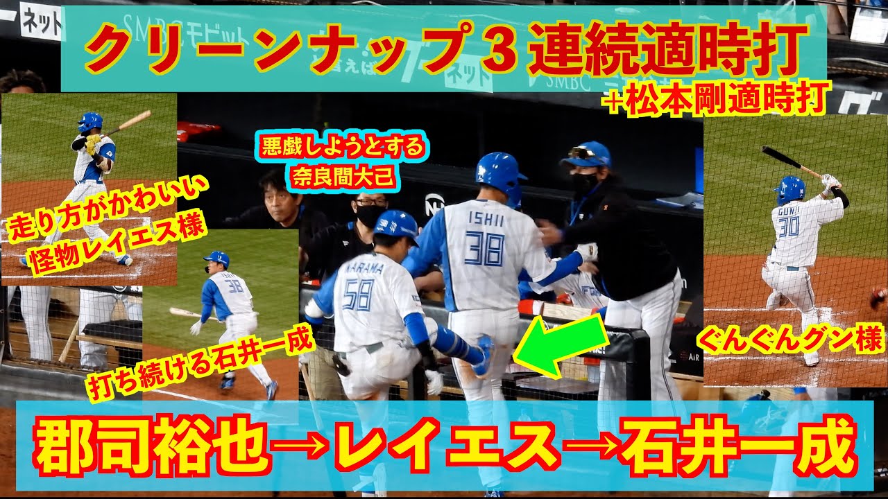 【20240728】郡司裕也→怪物レイエス様→石井一成3連続適時打+松本剛の適時打!さらに点差が広がり9−0になる。