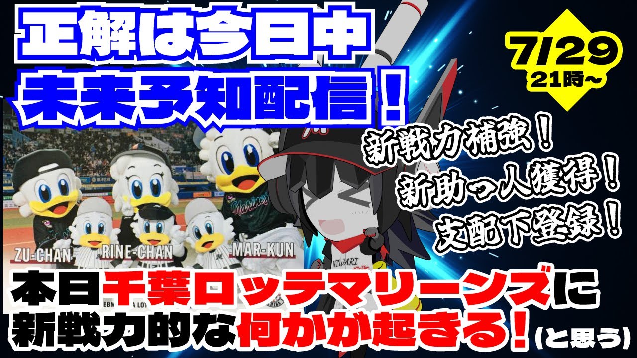 【正解は本日21時】本日、千葉ロッテマリーンズに新戦力的な何かが起きる‼(と思う) ので、事前に配信枠を作っておきました! 新戦力語り配信!