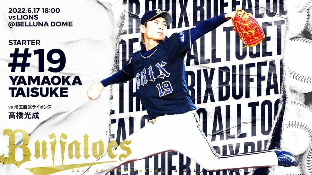 18時00分試合開始6月17日baseballBs2022buffaloesNPB Pacific LeagueOfficial MediaORIXORIX BuffaloesORIX Buffaloes Official Mediaオリックス・バファローズプロ野球ベルーナドーム予告先発投手埼玉西武戦山岡泰輔