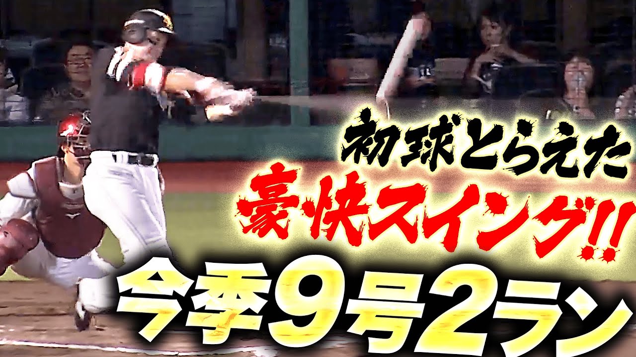 【初球を豪快に…】栗原陵矢『高め変化球を叩いて右翼席へ…今季9号2ランで貴重な追加点!』