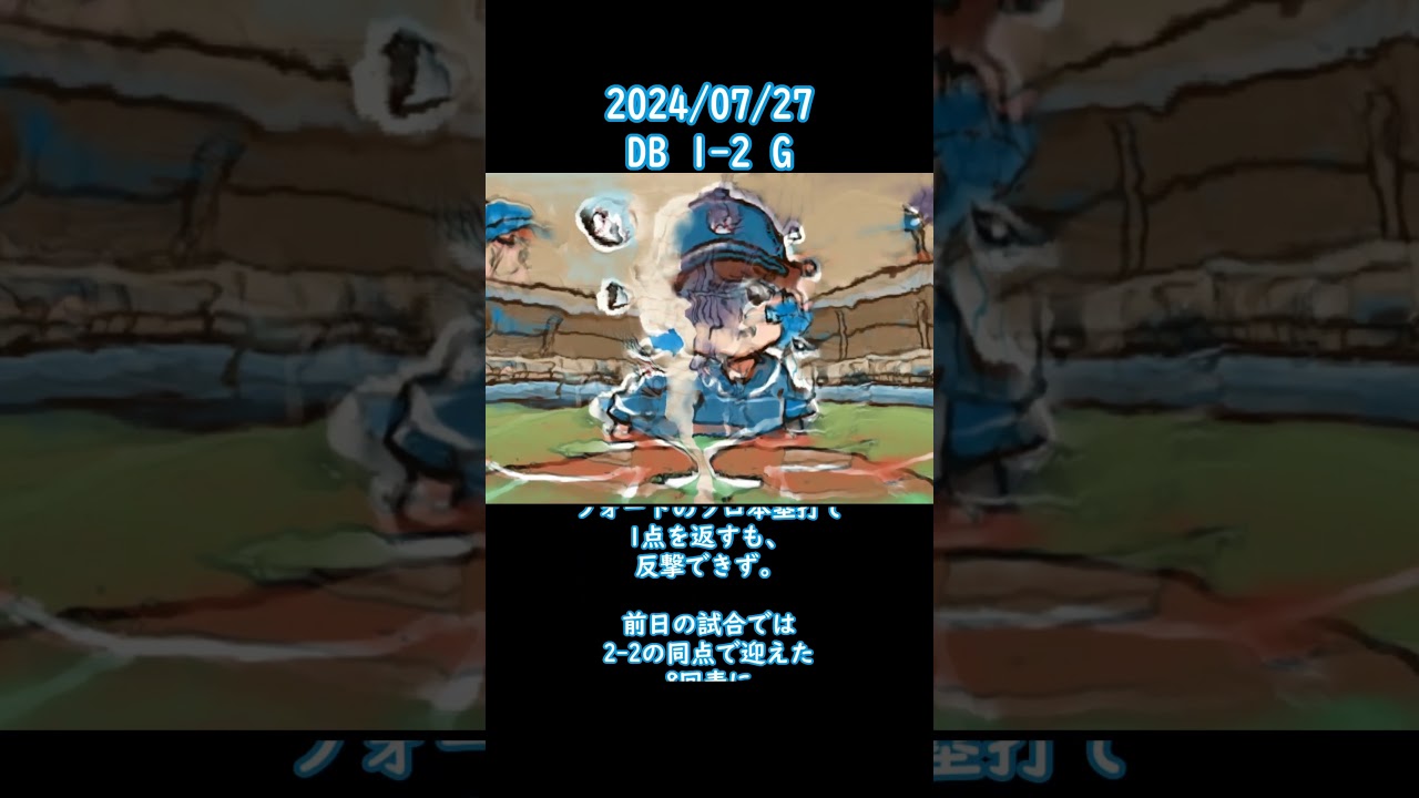 2024/07/27 #横浜 #ベイスターズ #横浜denaベイスターズ #shorts DeNAは巨人に2戦連続で敗れ、4連敗となった。先発山﨑康晃が2回表に先制点を許し、5回表には2番手森唯人が追加点を与えた。打線は5回裏にフォードのソロ本塁打で1点を返すも、反撃できず。前日の試合では2-2の同点で迎えた8回表に中川虎大が連打を浴び、満塁の好機も得点できず黒星。山﨑はプロ初先発で好投したが、打線が振るわず連敗を止められなかった。 YOKOHAMA DeNA BAYSTARS中川虎大横浜DeNAベイスターズ NPBHUB.COM | The Fanbase of Nippon Baseball & Nippon Professional Baseball