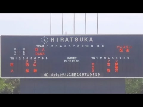 20240727 吉野と西舘!両チームのバッテリー発表【横浜DeNAベイスターズvs読売ジャイアンツ】@バッティングパレス相石スタジアムひらつか[イースタン・リーグ 2軍戦]平塚球場