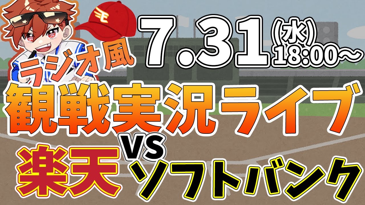 【観戦ライブ配信】徹底解説!プロ野球 楽天 VS ソフトバンク #rakuteneagles #東北楽天ゴールデンイーグルス 7/31【ラジオ実況風】