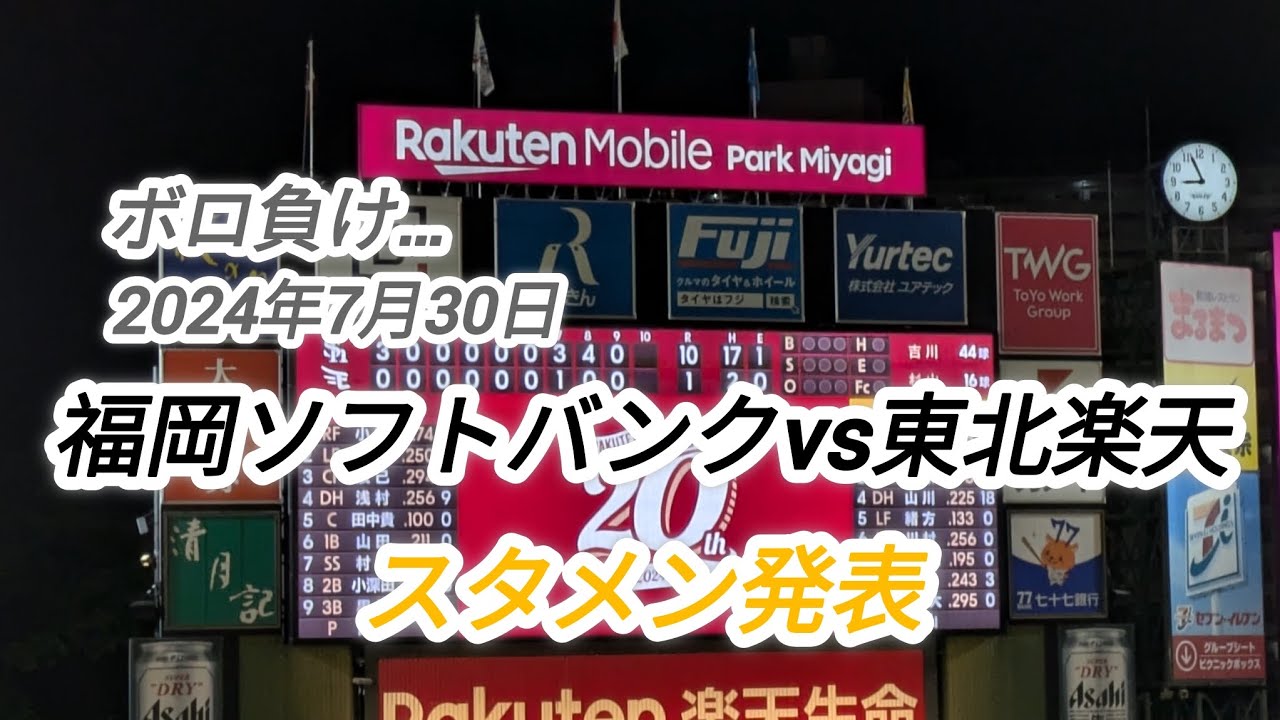 【ボロ負け】2024年7月30日、東北楽天ゴールデンイーグルスvs福岡ソフトバンクホークス、スタメン発表。 ボロ負けやで〜() Tohoku Rakuten Golden Eagles東北楽天ゴールデンイーグルス NPBHUB.COM | The Fanbase of Nippon Baseball & Nippon Professional Baseball